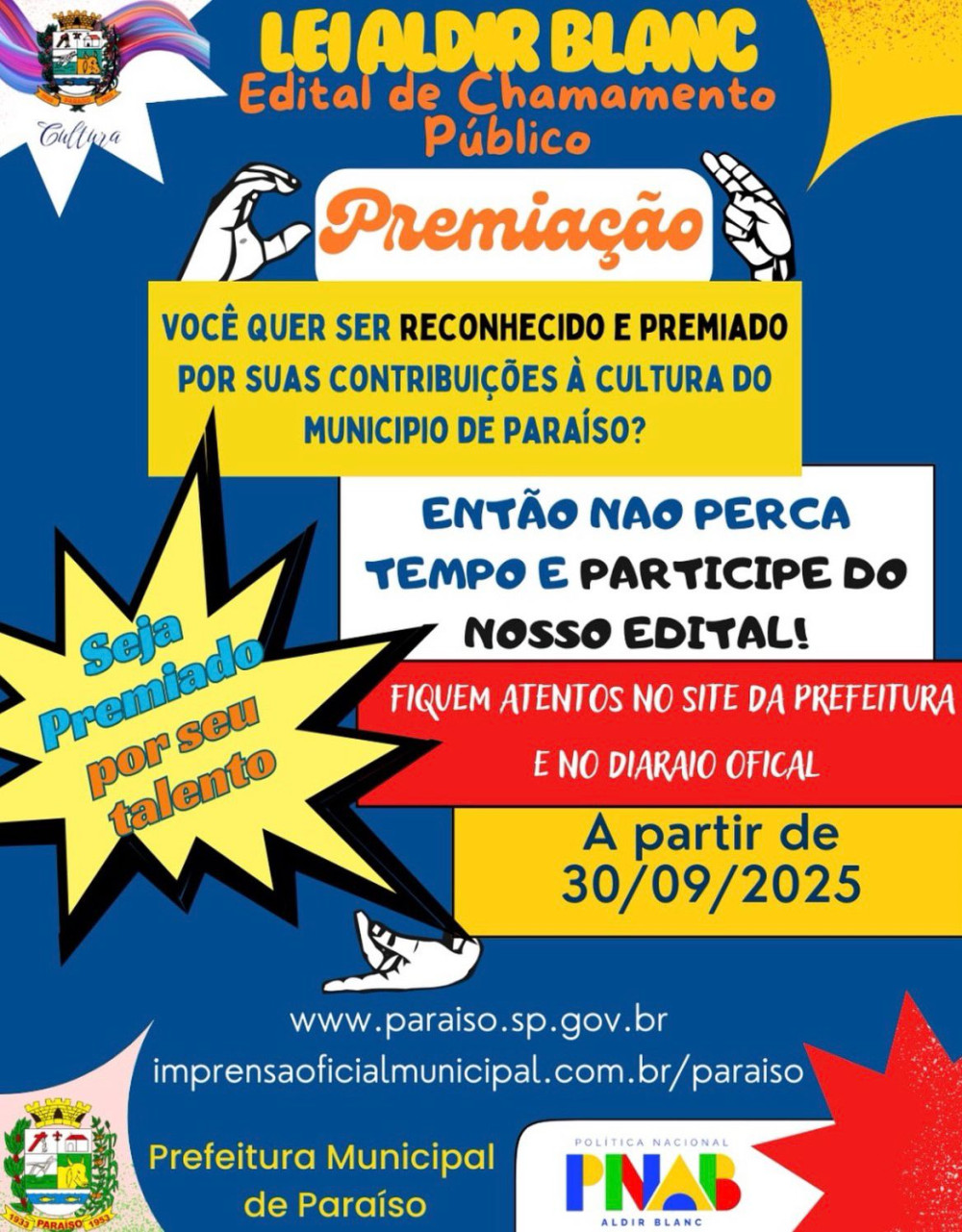 26/09/2025 - Atenção, artistas e fazedores de cultura de paraíso.