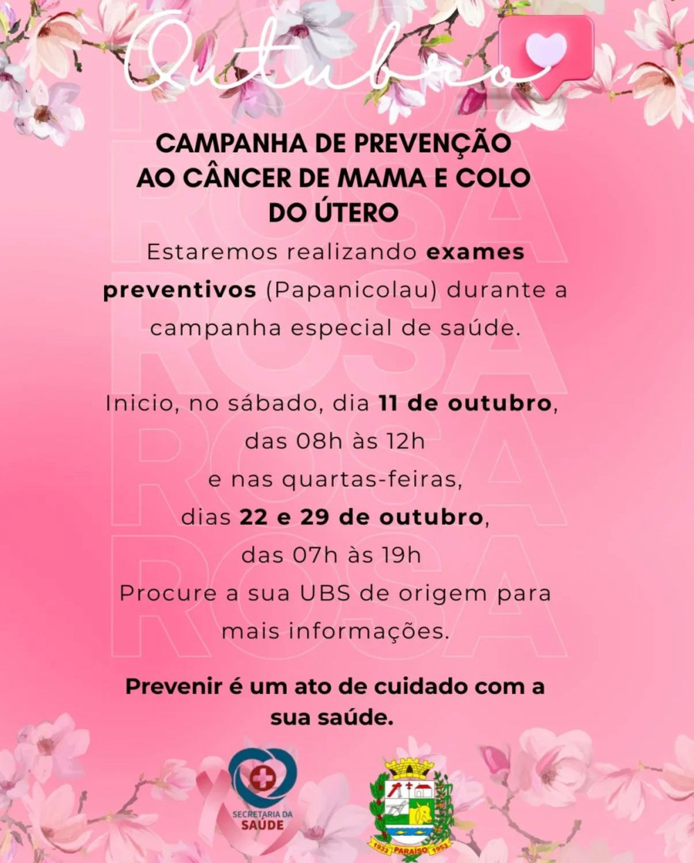 25/09/2025 - Campanha de Prevenção ao Câncer de Mama e Colo do Útero.