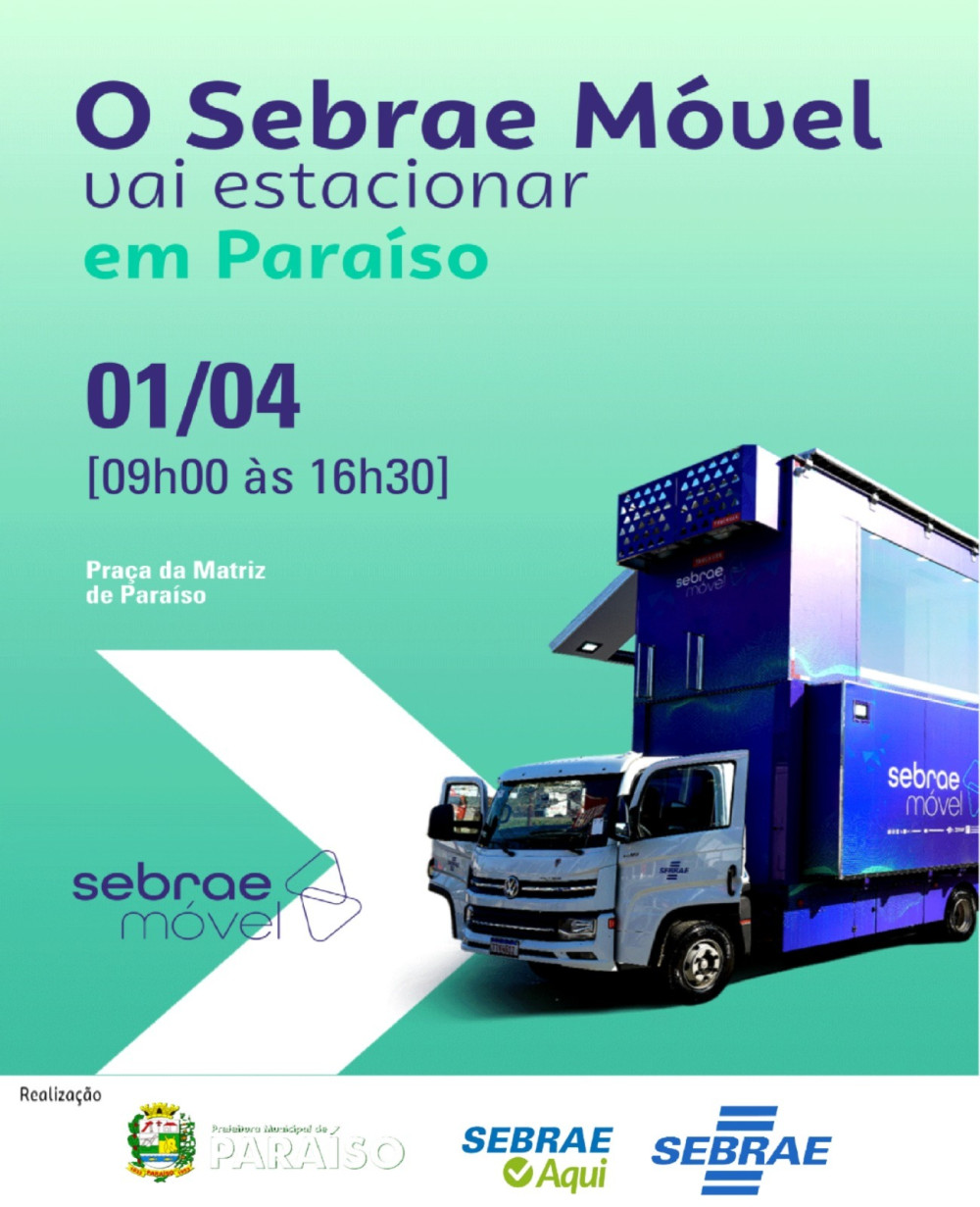24/03/2026 - O Sebrae móvel estará em Paraíso.