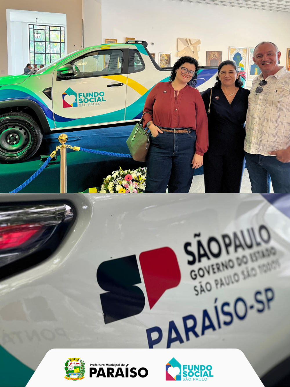 Durante o evento, o município recebeu um veículo destinado a ampliar e melhorar a execução das atividades do Fundo Social, fortalecendo o trabalho realizado diariamente em benefício da população paraisense.