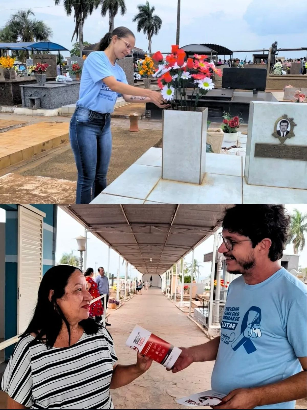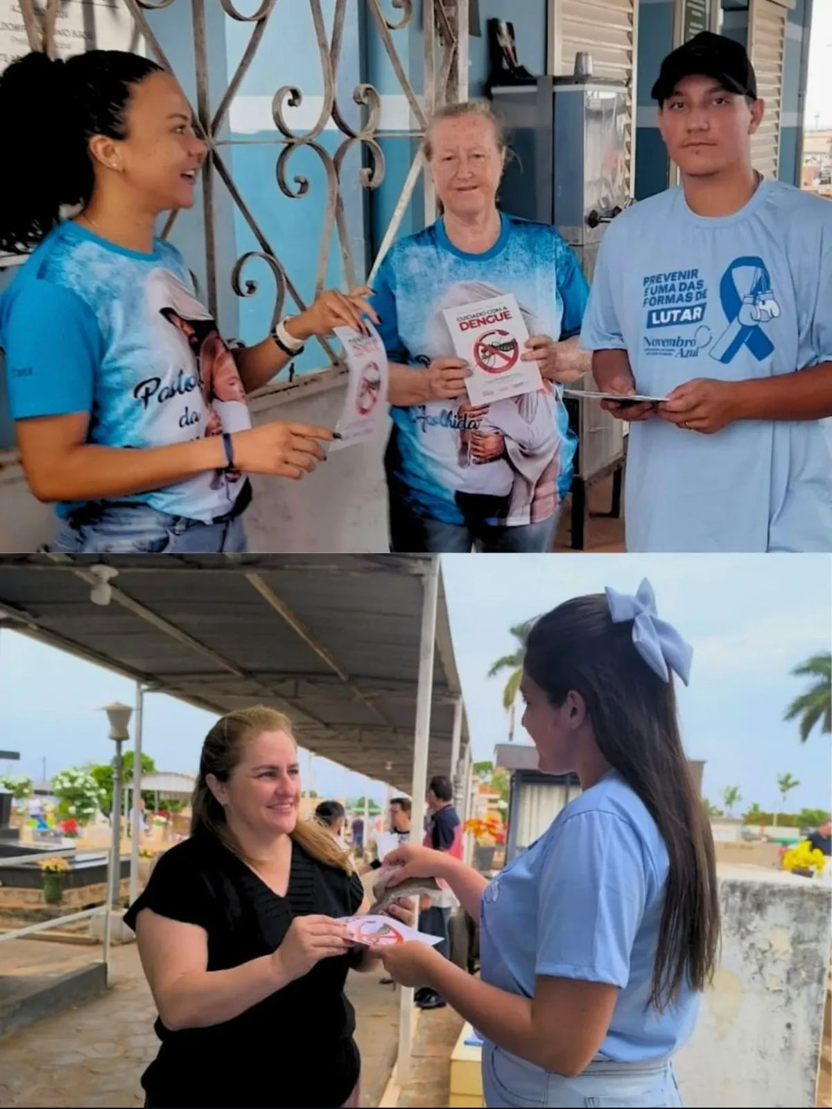 No Dia de Finados, enquanto famílias visitavam seus entes queridos, as equipes da Prefeitura, Saúde, Vigilância Sanitária e Controle de Endemias trabalharam orientando a população sobre como evitar o mosquito Aedes aegypti.