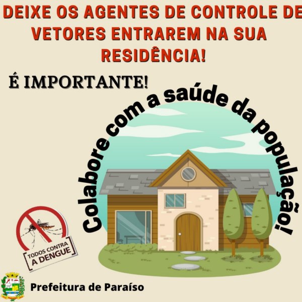Os Agentes de Controle de Vetores, da Prefeitura de Paraíso estão encontrando dificuldades para entrarem nas residências, o que é de extrema importância, já que estamos em período de chuva e o acúmulo de água possibilita o surgimento de criadouros.