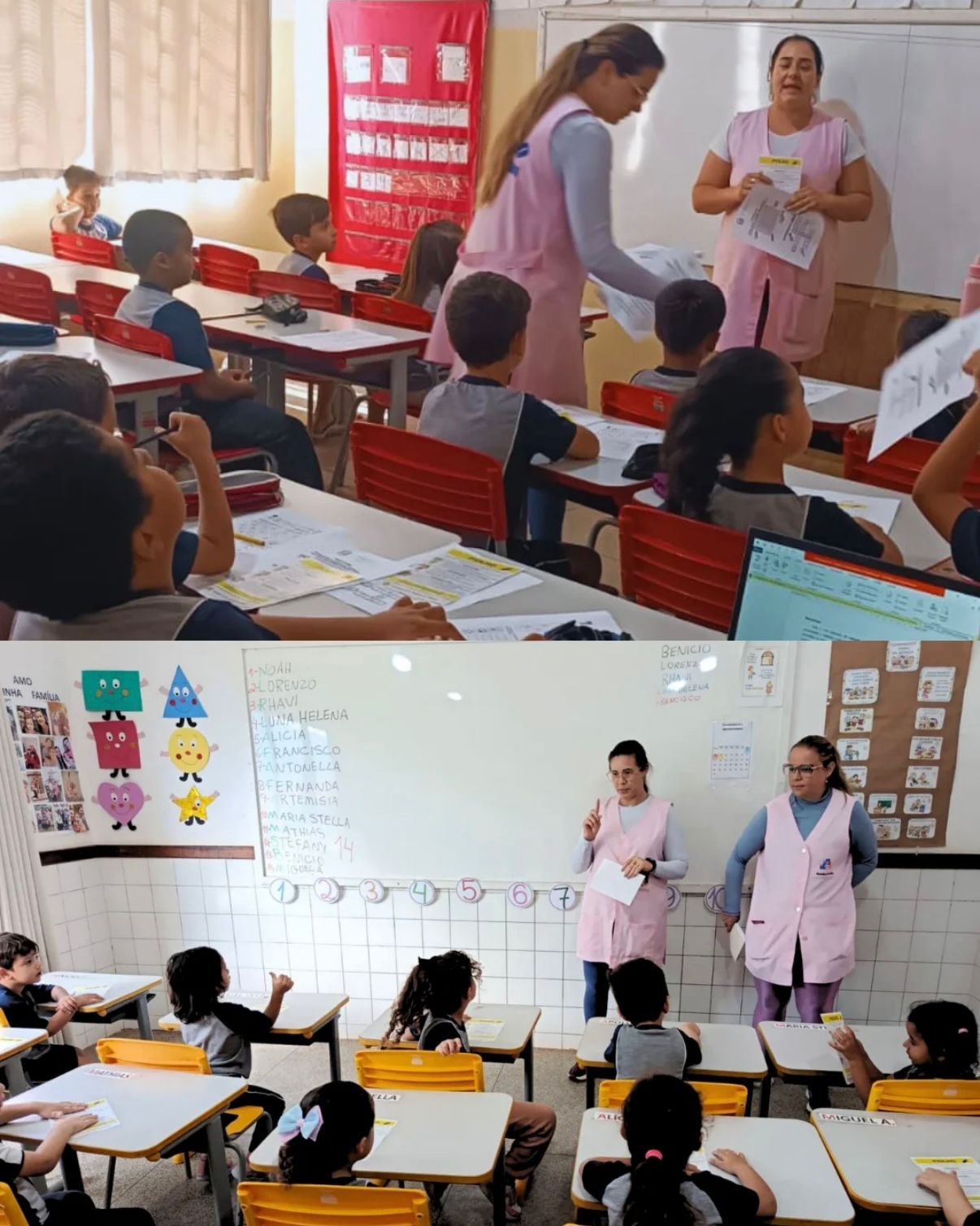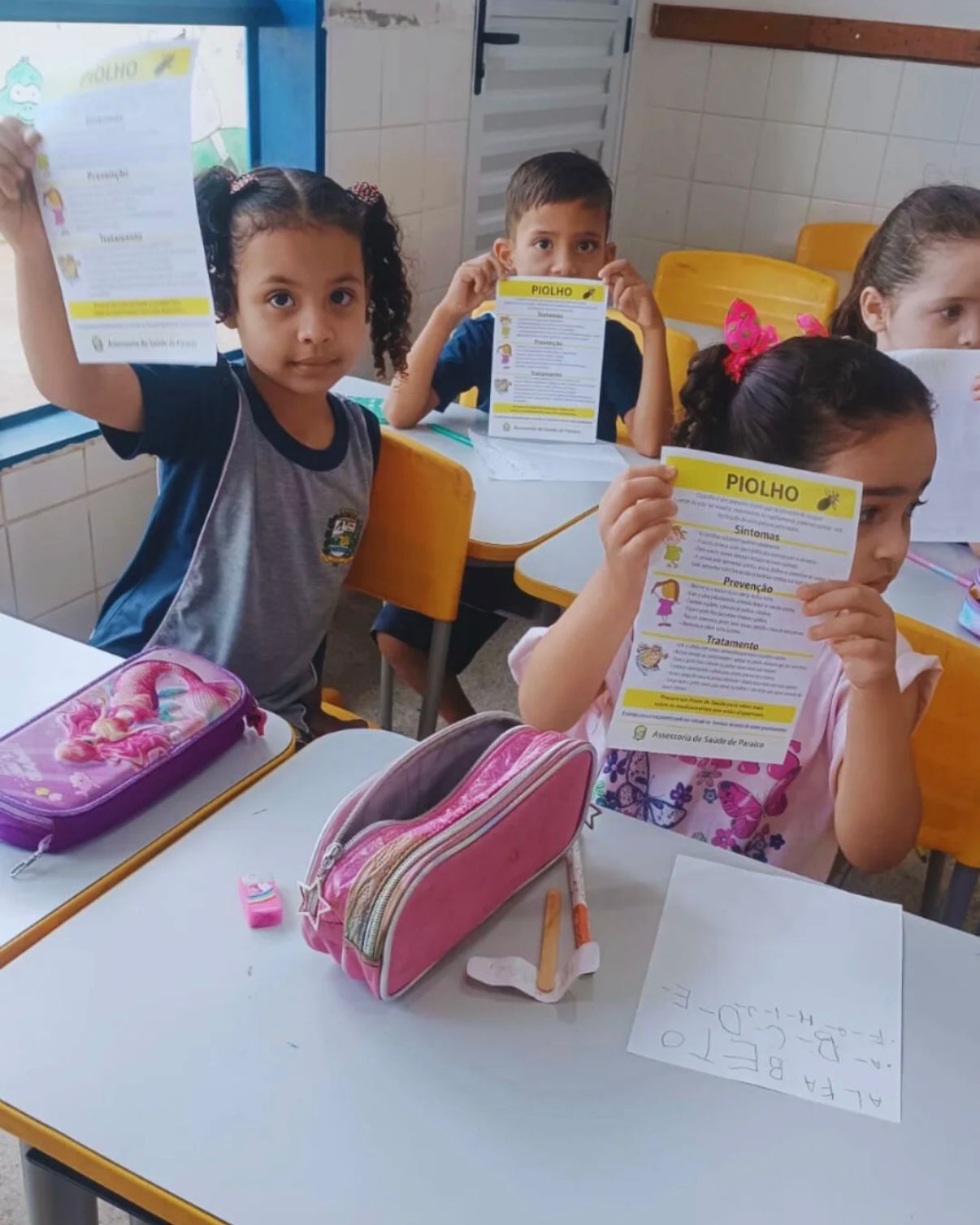 As ações contra o piolho também foram realizadas na CEMEI e no Projeto Educacional Ampliando o Saber, orientando as crianças sobre a prevenção e os cuidados com a higiene.