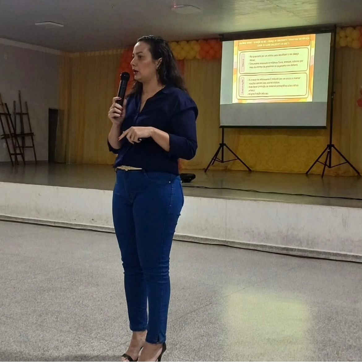 A palestra foi conduzida por Melina Borges, assistente social atuante no CRAS Nosso Teto, no município de Catanduva. Com vasta experiência na área, Melina trouxe orientações sobre a escuta espontânea e os procedimentos adequados para garantir a proteção integral das crianças e adolescentes – um dever de toda a sociedade.