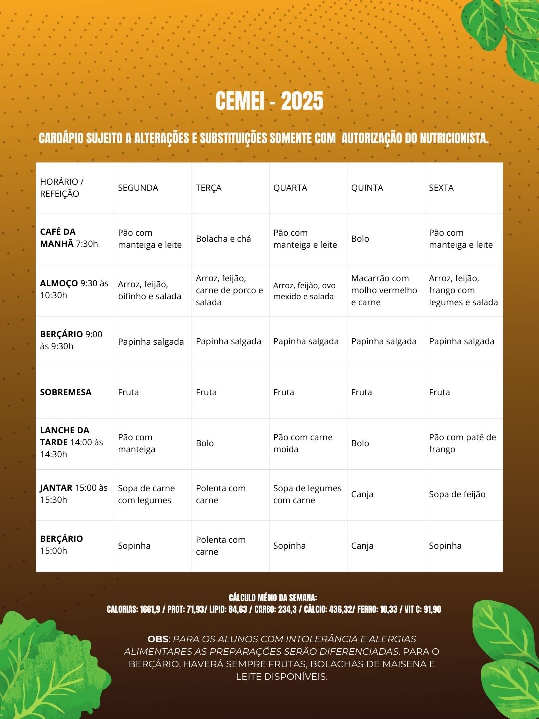 Foi elaborado e validado pela equipe técnica responsável, seguindo orientações nutricionais vigentes.