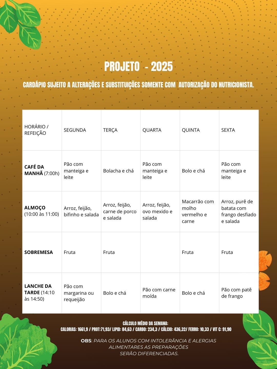 Cardápio Escolar da Semana (24 a 28/11)