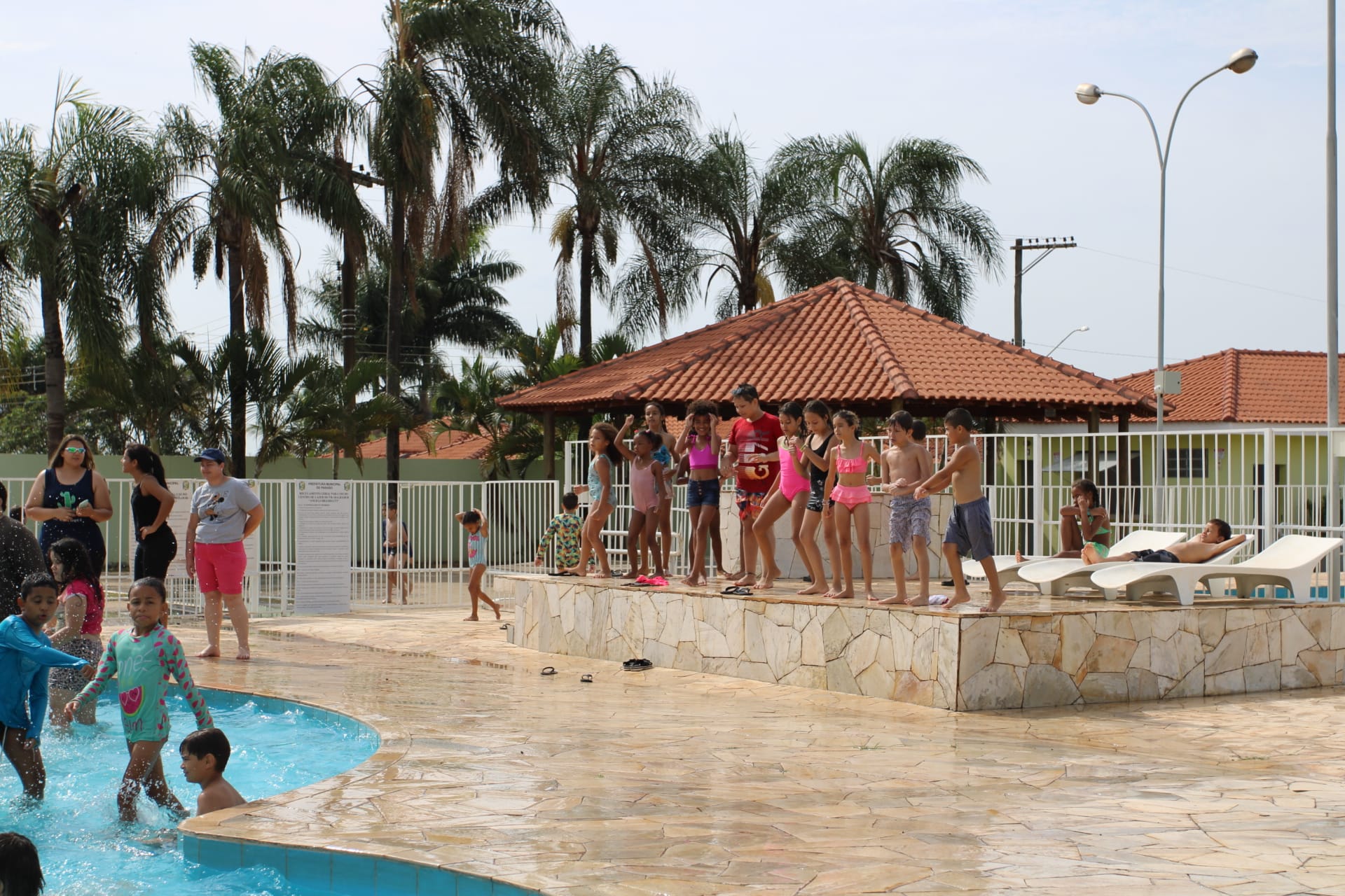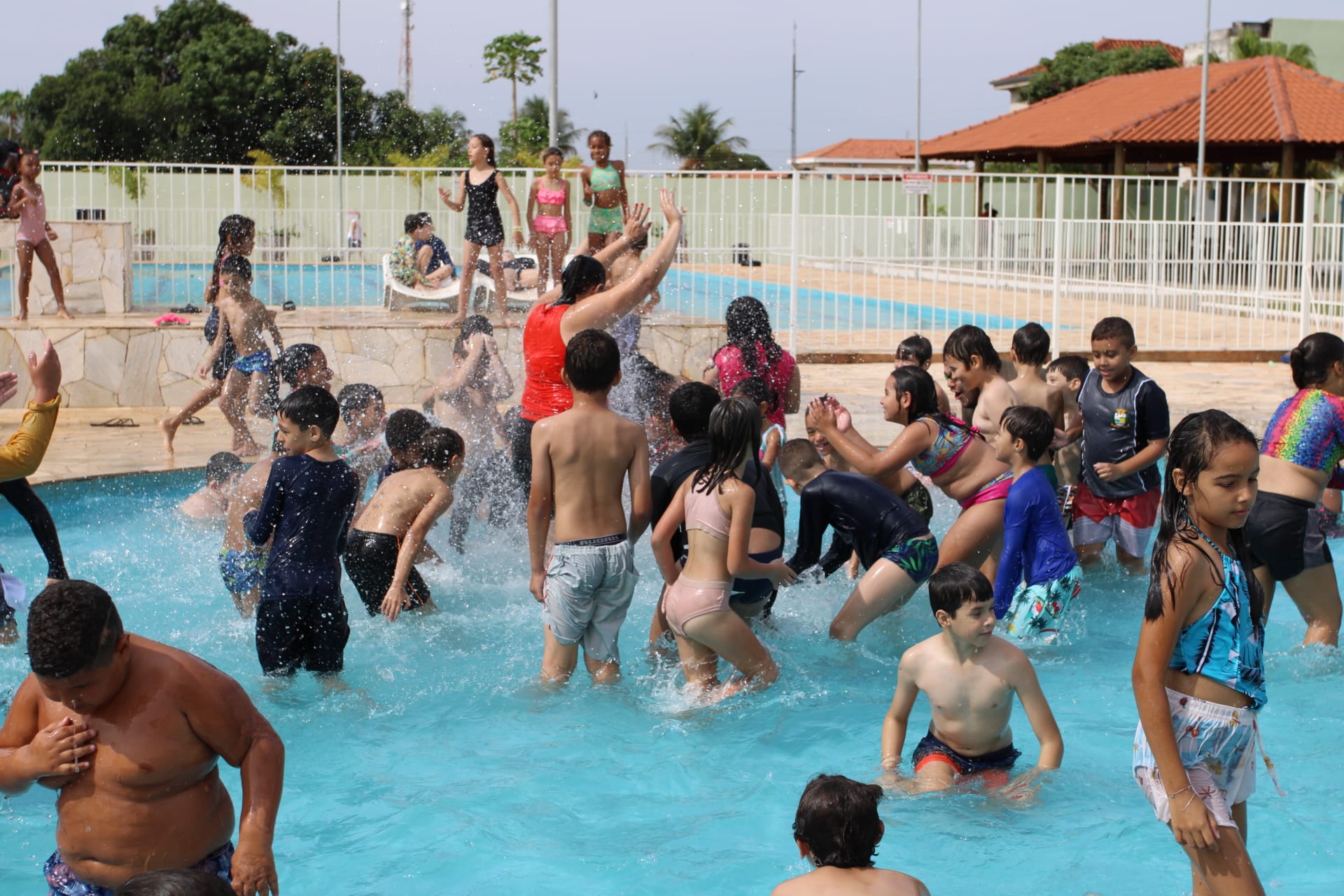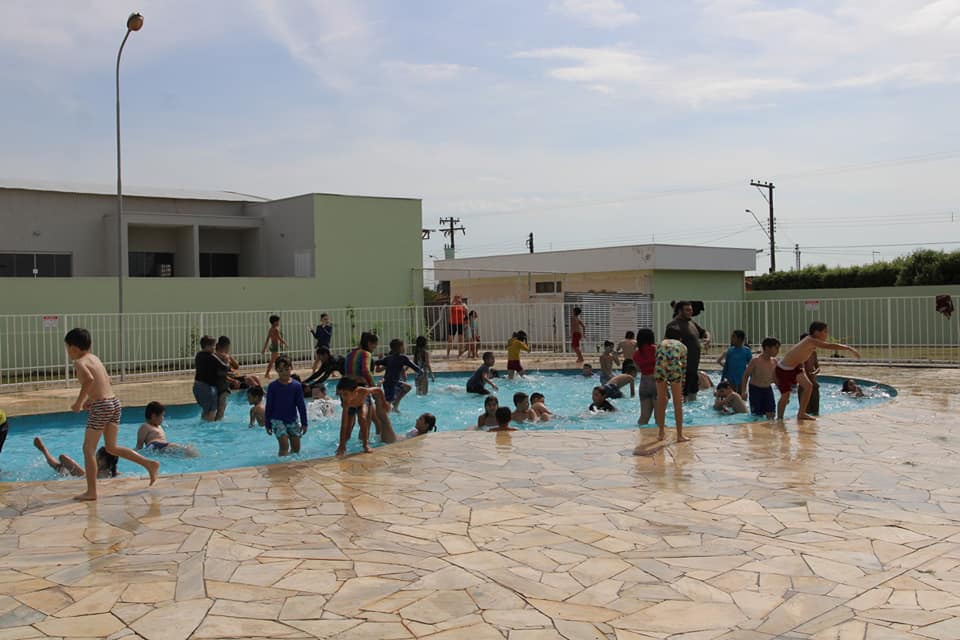 Nesta quarta-feira (4), os alunos do Projeto "Ampliando o Saber" estão no Centro de Lazer do Trabalhador "Angelo Brambatti" fazendo um piquenique e se divertindo na piscina infantil, no campo de areia e nas áreas cobertas.