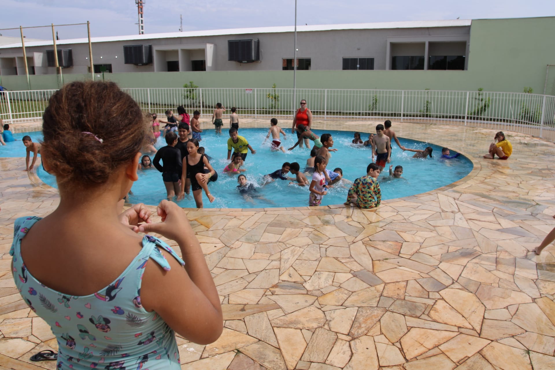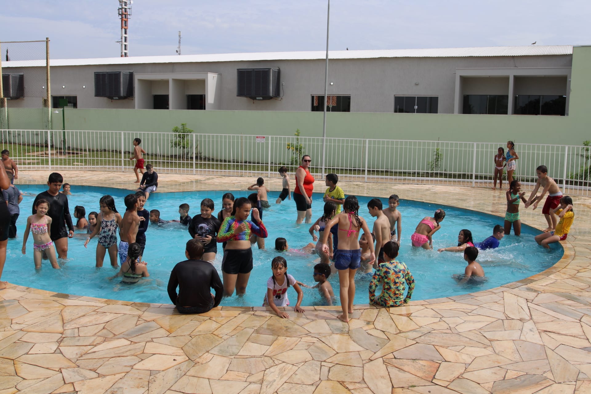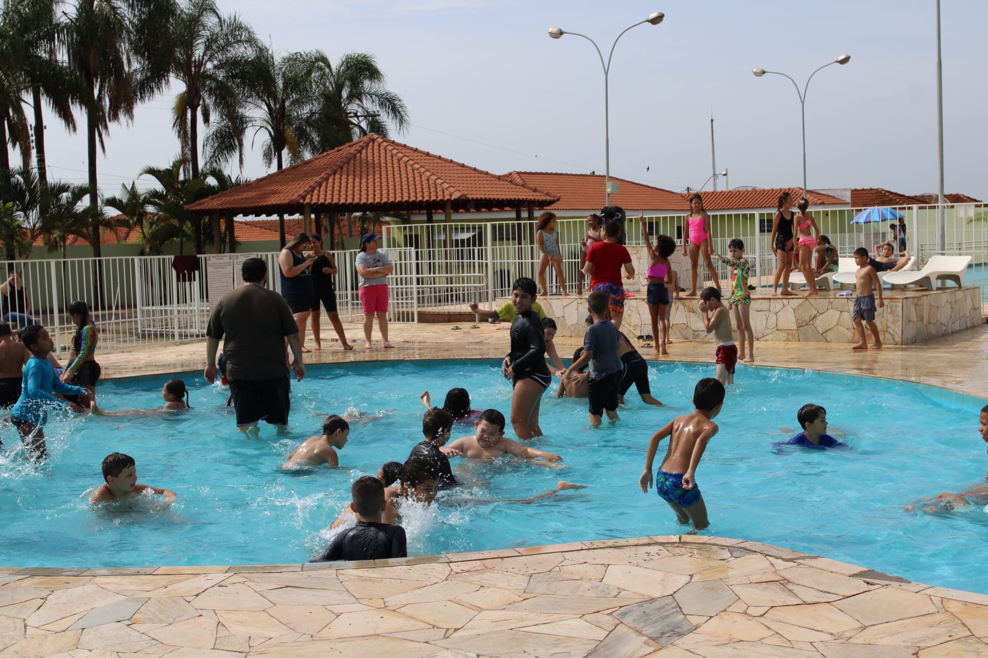 Nesta quarta-feira (4), os alunos do Projeto "Ampliando o Saber" estão no Centro de Lazer do Trabalhador "Angelo Brambatti" fazendo um piquenique e se divertindo na piscina infantil, no campo de areia e nas áreas cobertas.