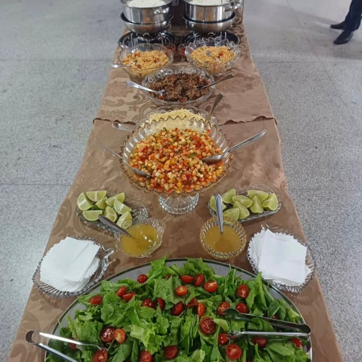 O cardápio foi preparado com muito carinho pelo buffet Roberta Gomes Gourmet, garantindo sabor e qualidade ao encontro.