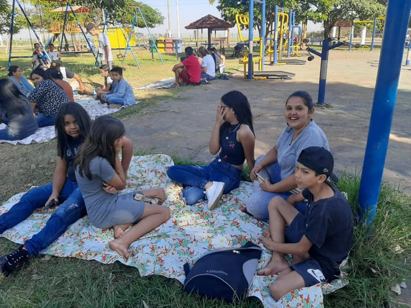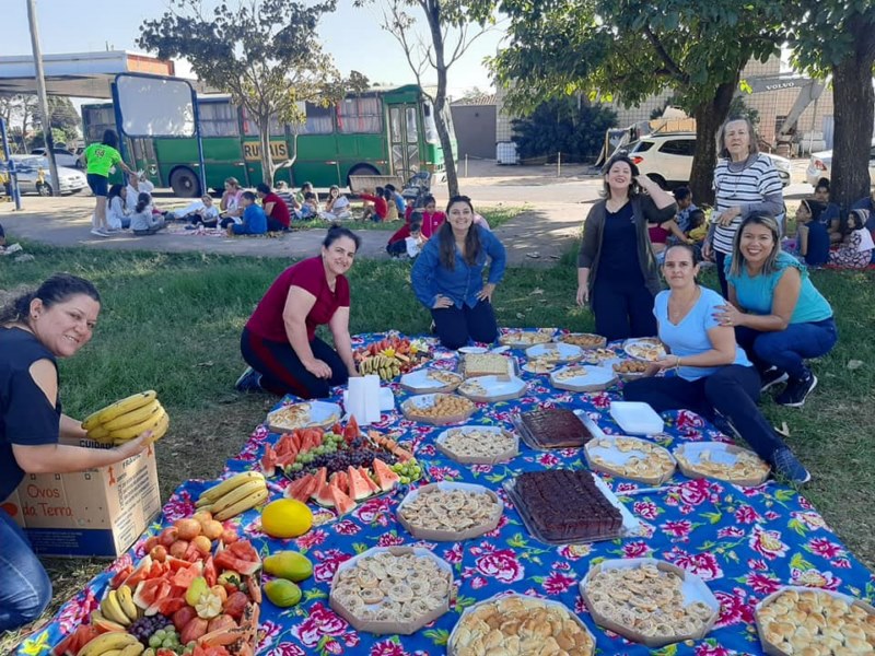 O piquenique foi no parquinho, na Pista de Caminhada. O piquenique foi realizado como forma de concluir o trabalho 'Prevenir um ato de Amor', que busca trazer momentos em família.