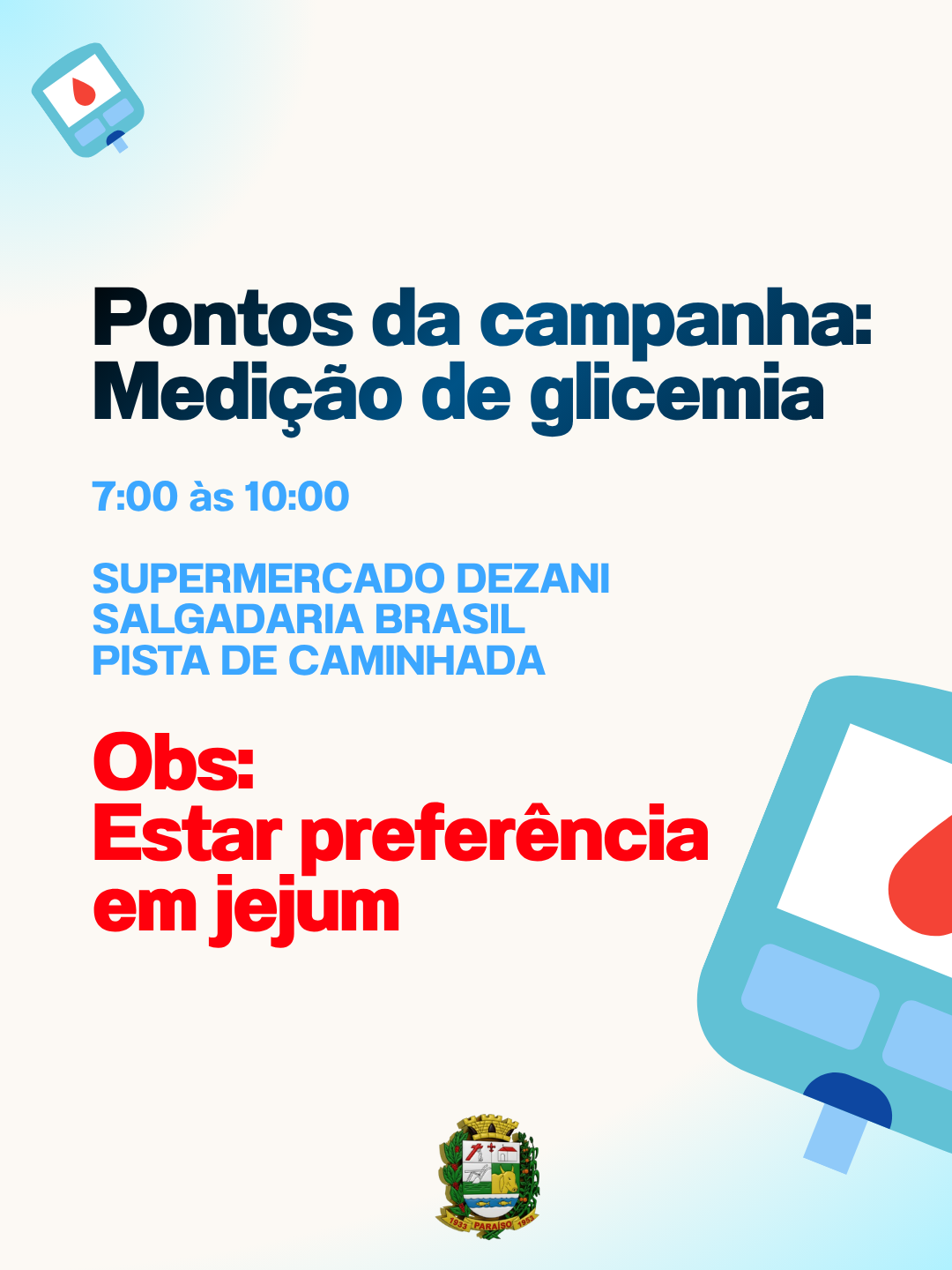 A Prefeitura de Paraíso, por meio da Secretaria da Saúde, convida toda a população a participar da campanha de prevenção e controle do diabetes.