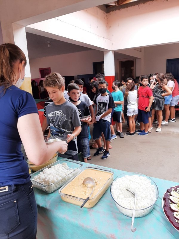 Na escola Hélio o almoço foi para os alunos dos 5º anos, que em 2022 começam os estudos na escola Maria Franco.
