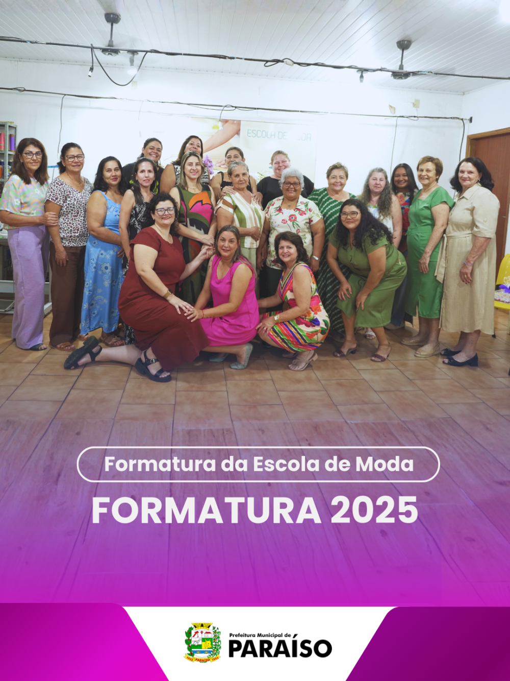 A Prefeitura de Paraíso, por meio do Fundo Social de Solidariedade, realizou a formatura da Escola de Moda, concluindo mais um ciclo de capacitação oferecido aos munícipes.