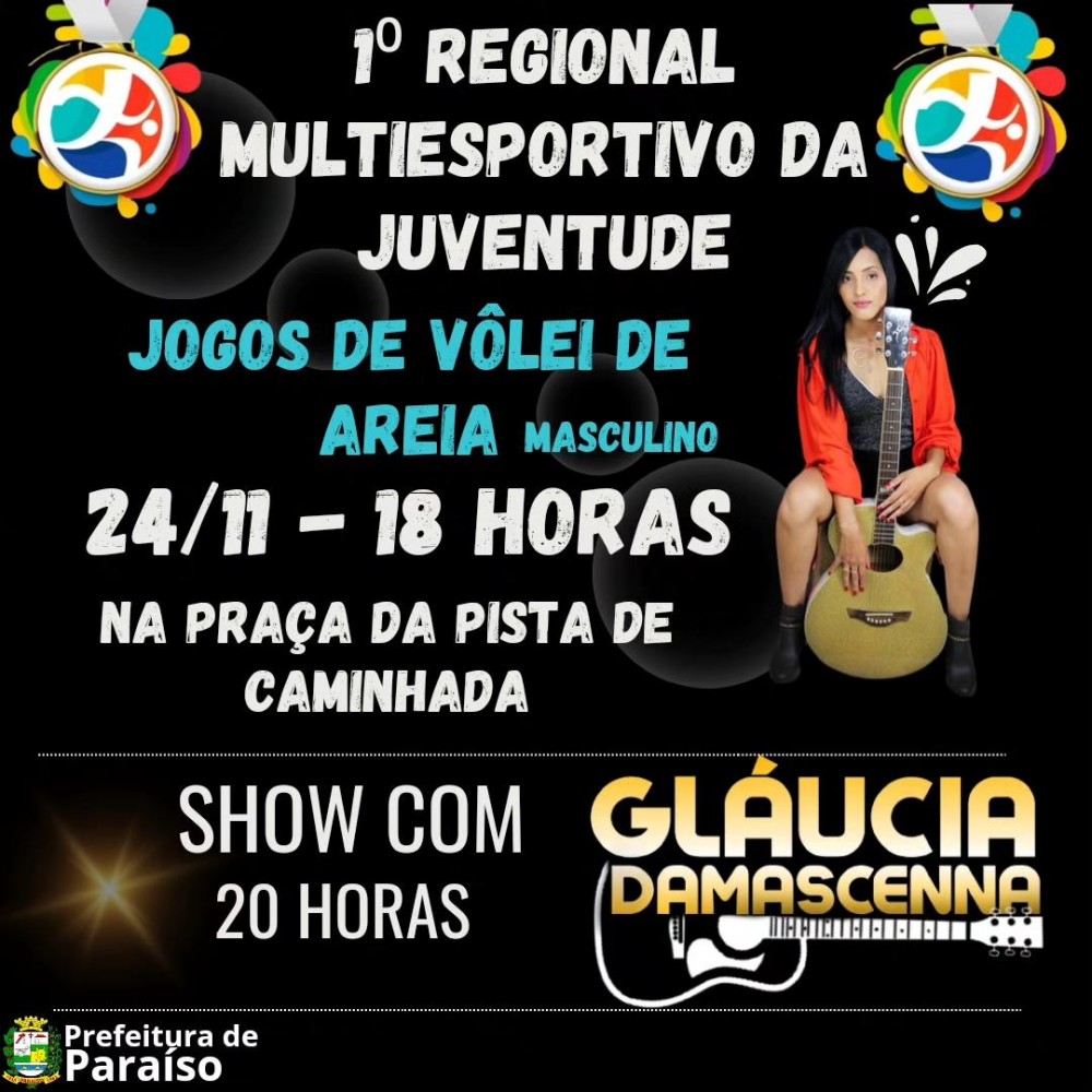 Nesta sexta-feira (24/11), acontece mais uma rodada do 1? Regional Multiesportivo da Juventude de Paraíso 2023, com jogos de vôlei de areia masculino, que ocorre a partir das 18 horas na Praça da Pista de Caminhada.