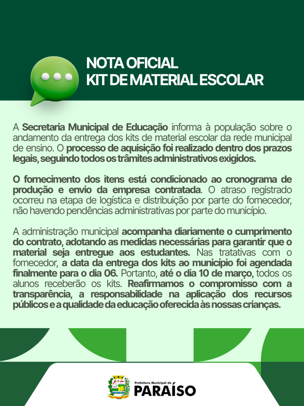 Nota Oficial – Kit de Material Escolar.