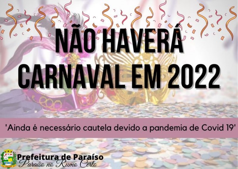A decisão é devido a necessidade de cautela diante da pandemia de Covid 19 que, apesar da queda nos indicadores de contaminação e, ao mesmo tempo, avanço da imunização, ainda exige atenção. A responsabilidade com a vida fez com que a decisão fosse pela não realização do Carnaval de 2022.