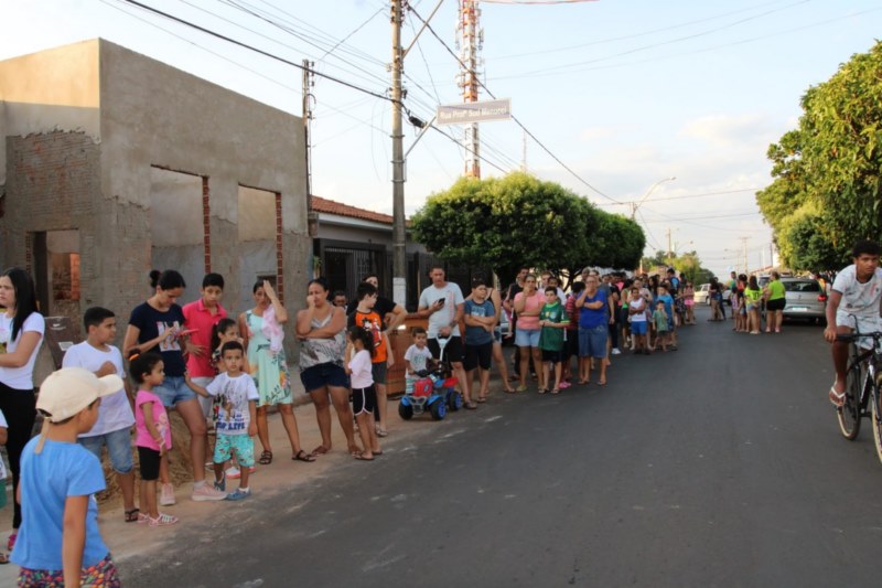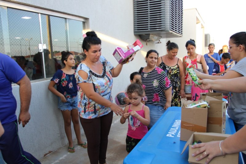 Os meninas saíram felizes com as bolas recebidas e as meninas com a boneca.