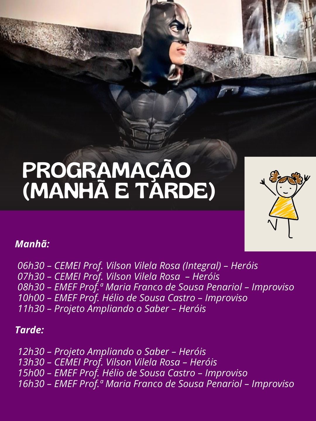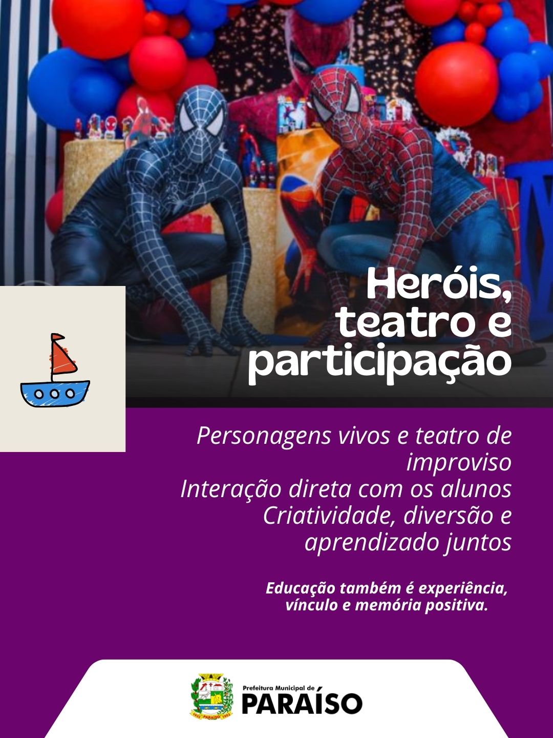 Ações culturais, teatro de improviso e atividades interativas fortalecem o aprendizado, a convivência e o vínculo com a escola.